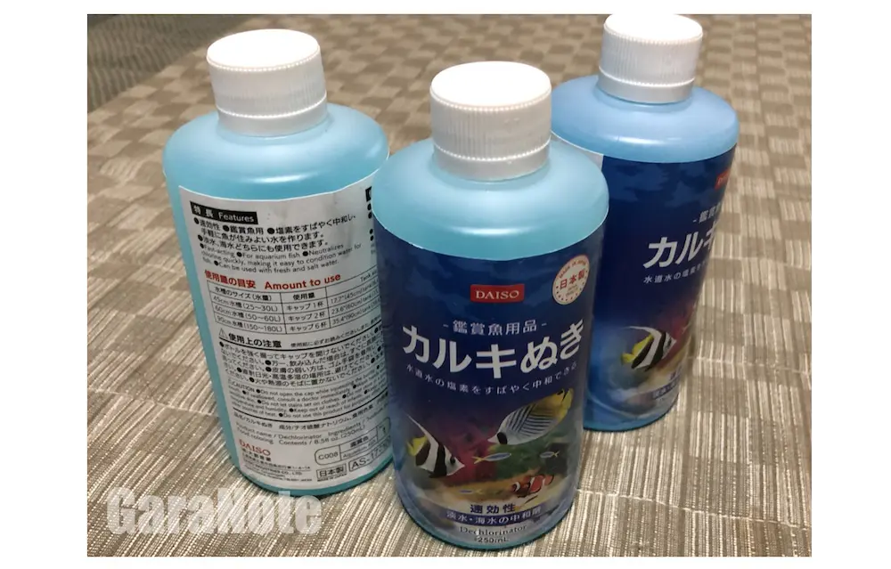 下図の弊社メイキットで使用しているカルキ抜きは、100円ショップ ダイソーで購入できる。